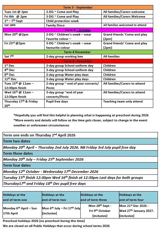 Invite a special guest to come experience what happens at preschool and enjoy afternoon tea with us - please bring along afternoon tea to share with your child.