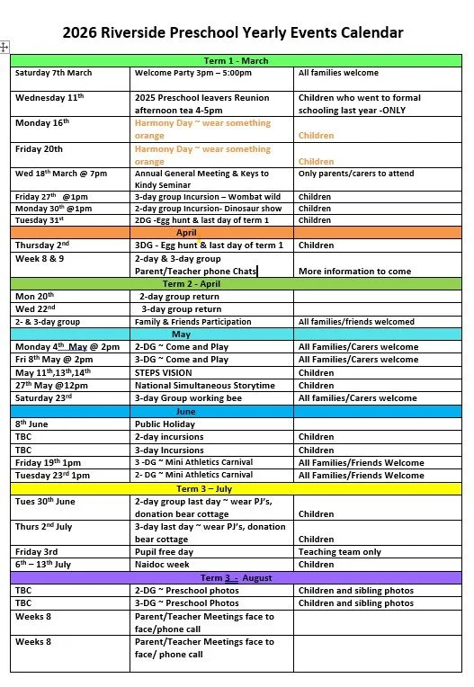 Parent working bee is a good way to meet other families and help maintain the beautiful indoors/outdoor preschool environment there are always many jobs to be done - gardening, cleaning, and many other projects. Come along and help us clean up ready for the following Term.